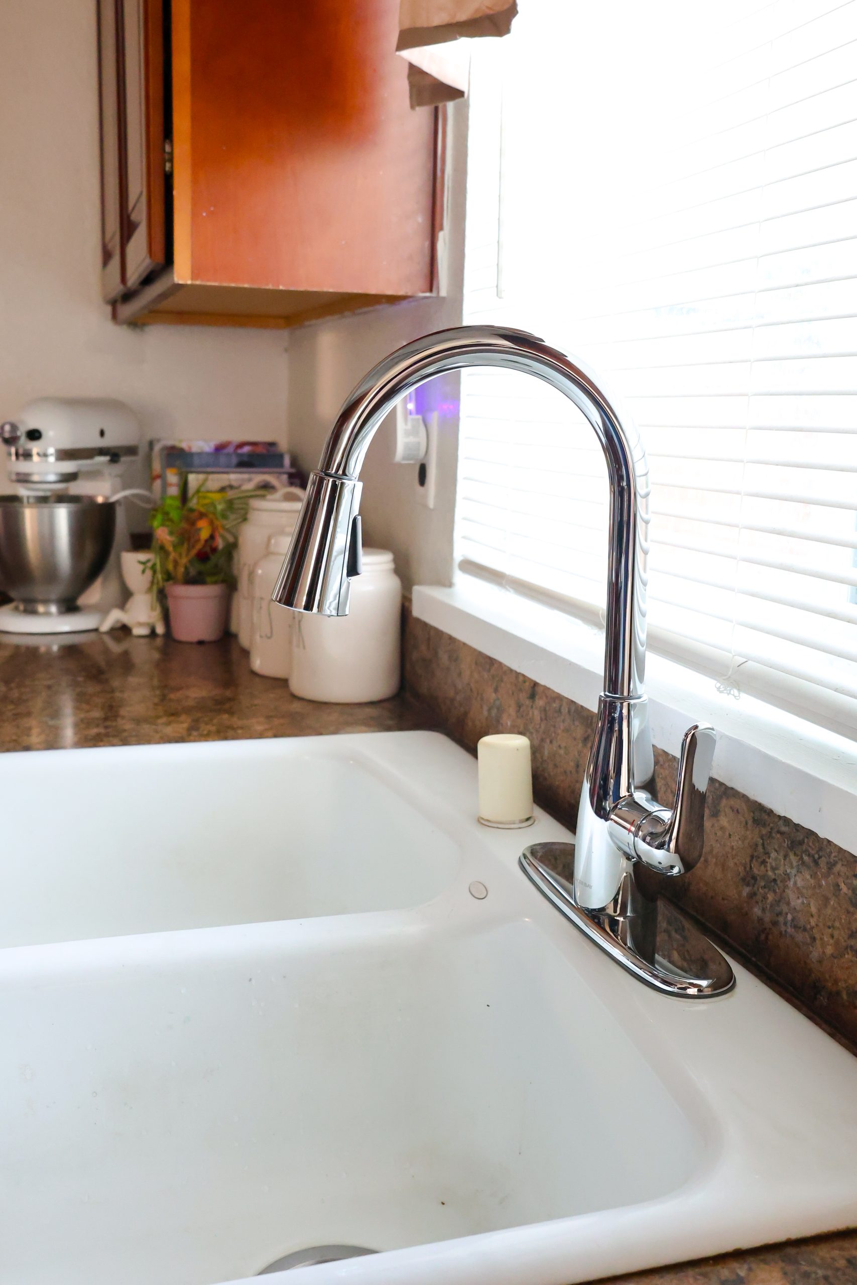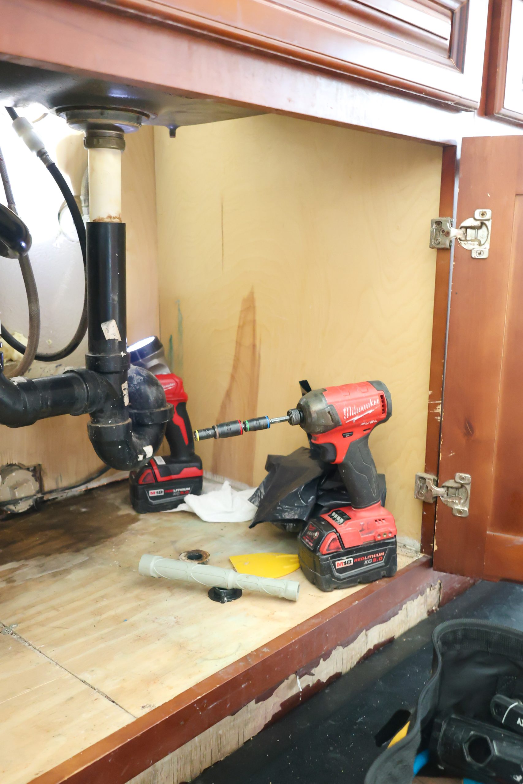 Hi guys! One thing about buying a fixer-upper you quickly learn which projects can wait and which ones absolutely cannot. For us, it was the kitchen sink. It was old, rusty, and had been leaking for a while, but recently it got so bad that it was basically out of control. Buckets weren’t cutting it anymore.