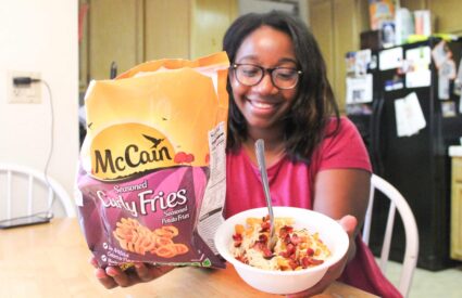 Cheesy mozzarella half time bacon fries (featuring McCain Potatoes).